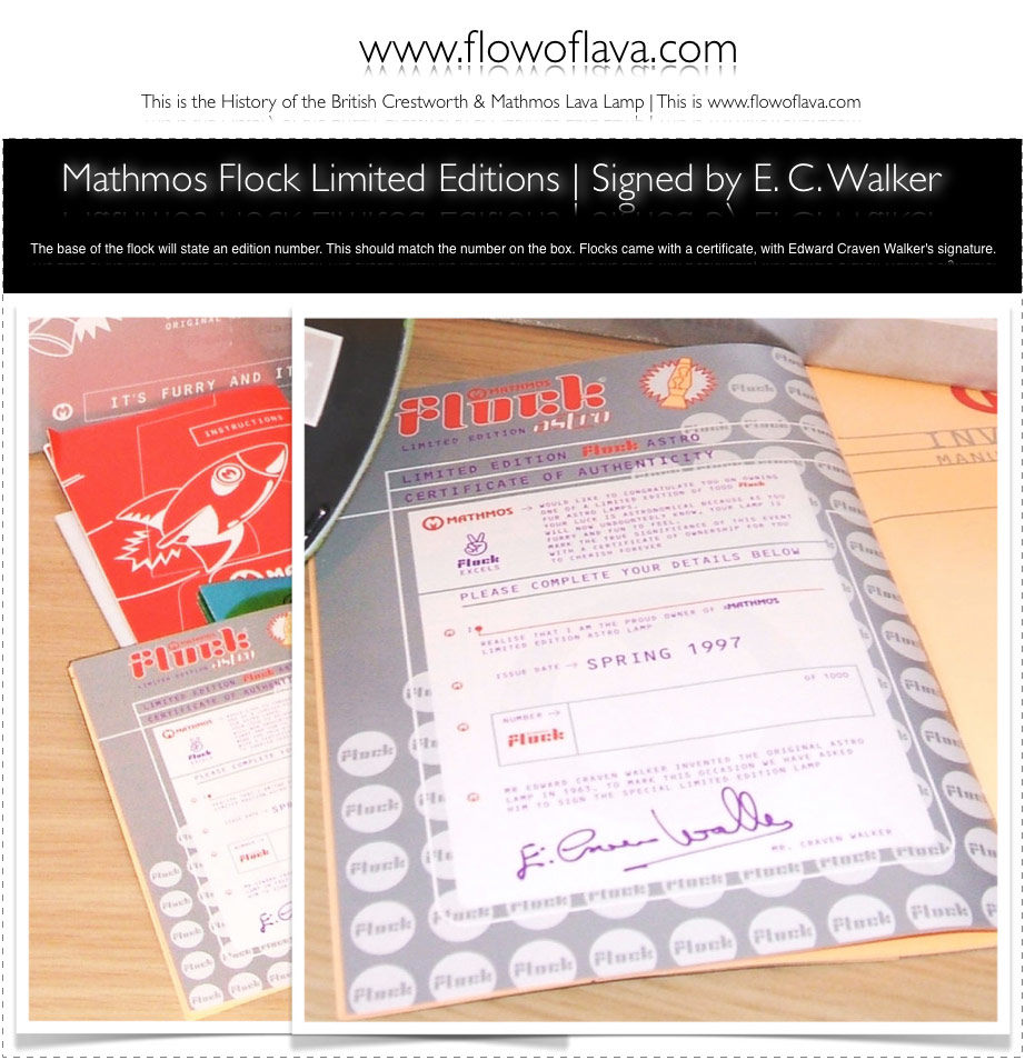The base of the flock will state an edition number. This should match the number on the front of the box. Flocks came with a certificate, with Edward Craven Walker's signature.